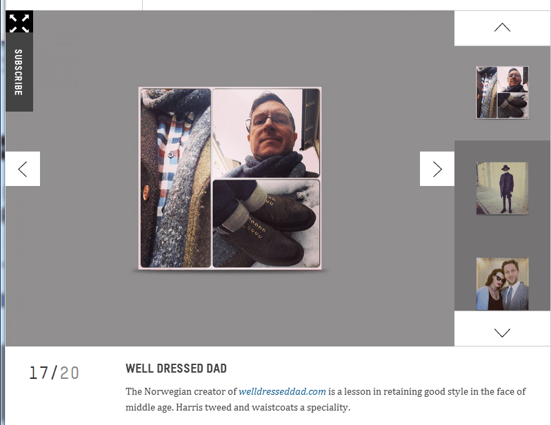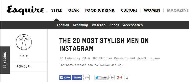 Yesterday brought a very nice surprise by way of Esquire UK. Quite out of the blue they included me in their list of the 20 most stylish men on Instagram! Looking at the other names on the list you can understand why this was so surprising: They are mainly professional players in the field of fashion, menswear and music. Editors, models, photographers, rappers and so forth. And Nick Wooster.