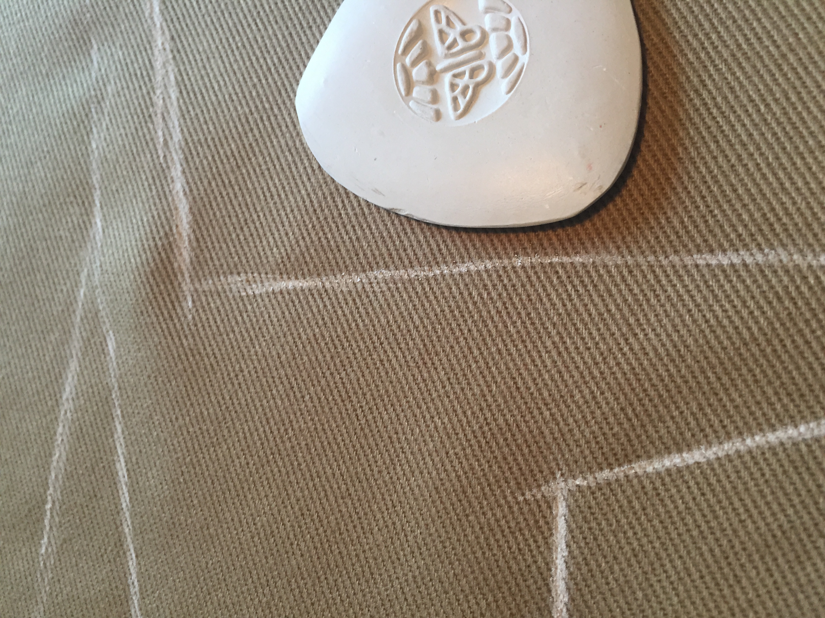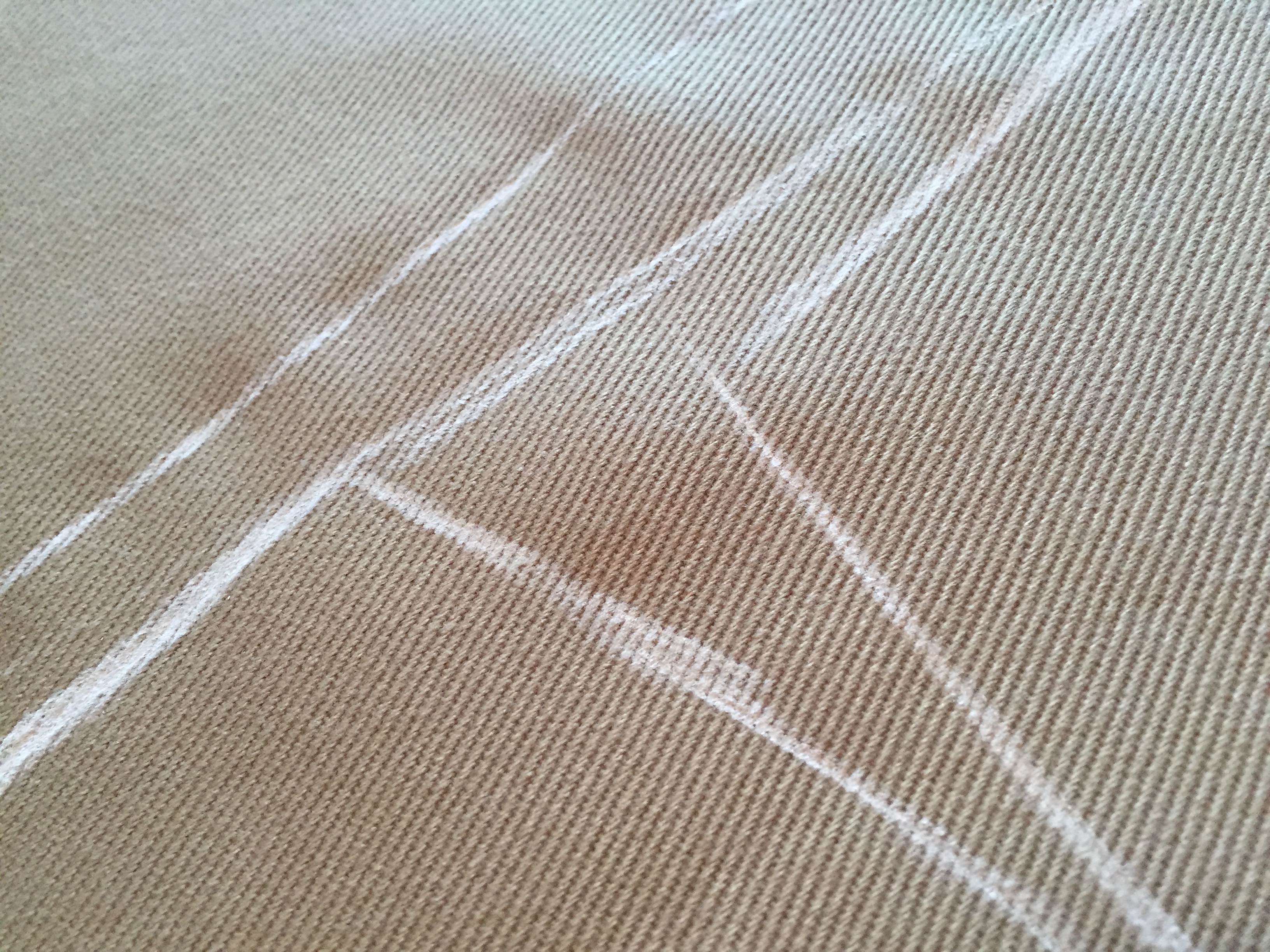 Transferring the pattern to fabric means you need to draw around the pattern. I use a piece of tailors chalk and hold the pattern in place using heavy books. You could also pin it in place, but that’s more work and we like to keep it simple. I always try to be as accurate as I can at this point, although it is tricky to make truly beautiful lines. I try to make up for it when cutting afterwards. It’s worth noting here that the seam allowance is 1.5cm, which means that your actual seam will be 1.5cm from the edge of the fabric, so it’s no crisis is your cut isn’t 100% laser-beautiful.