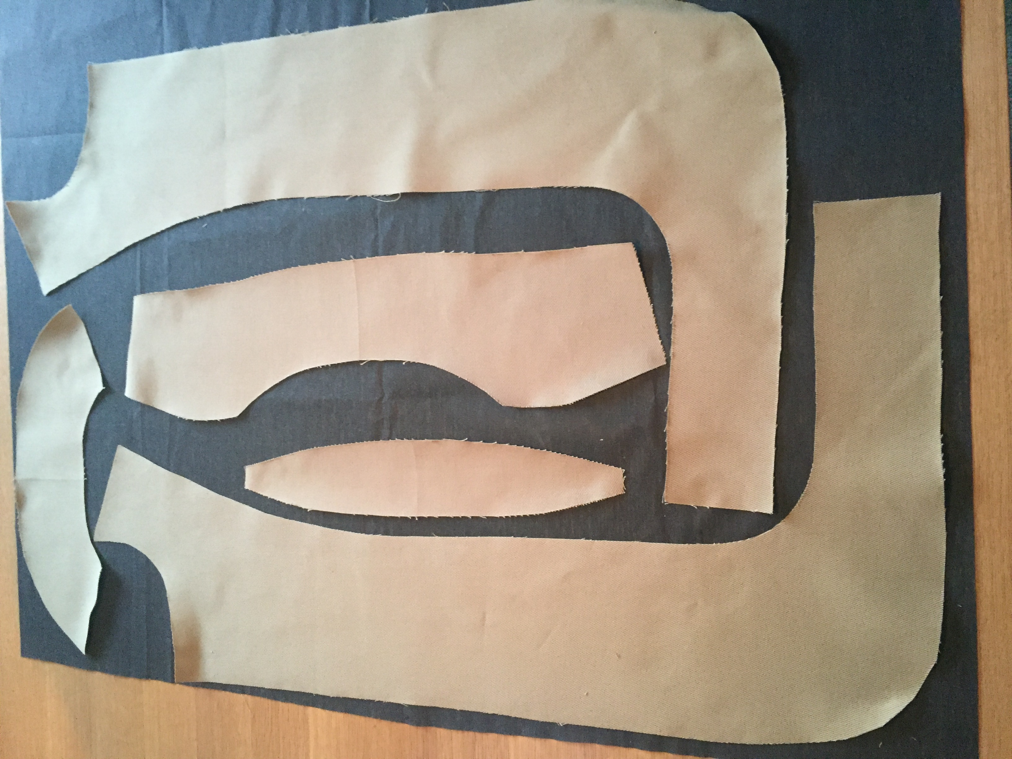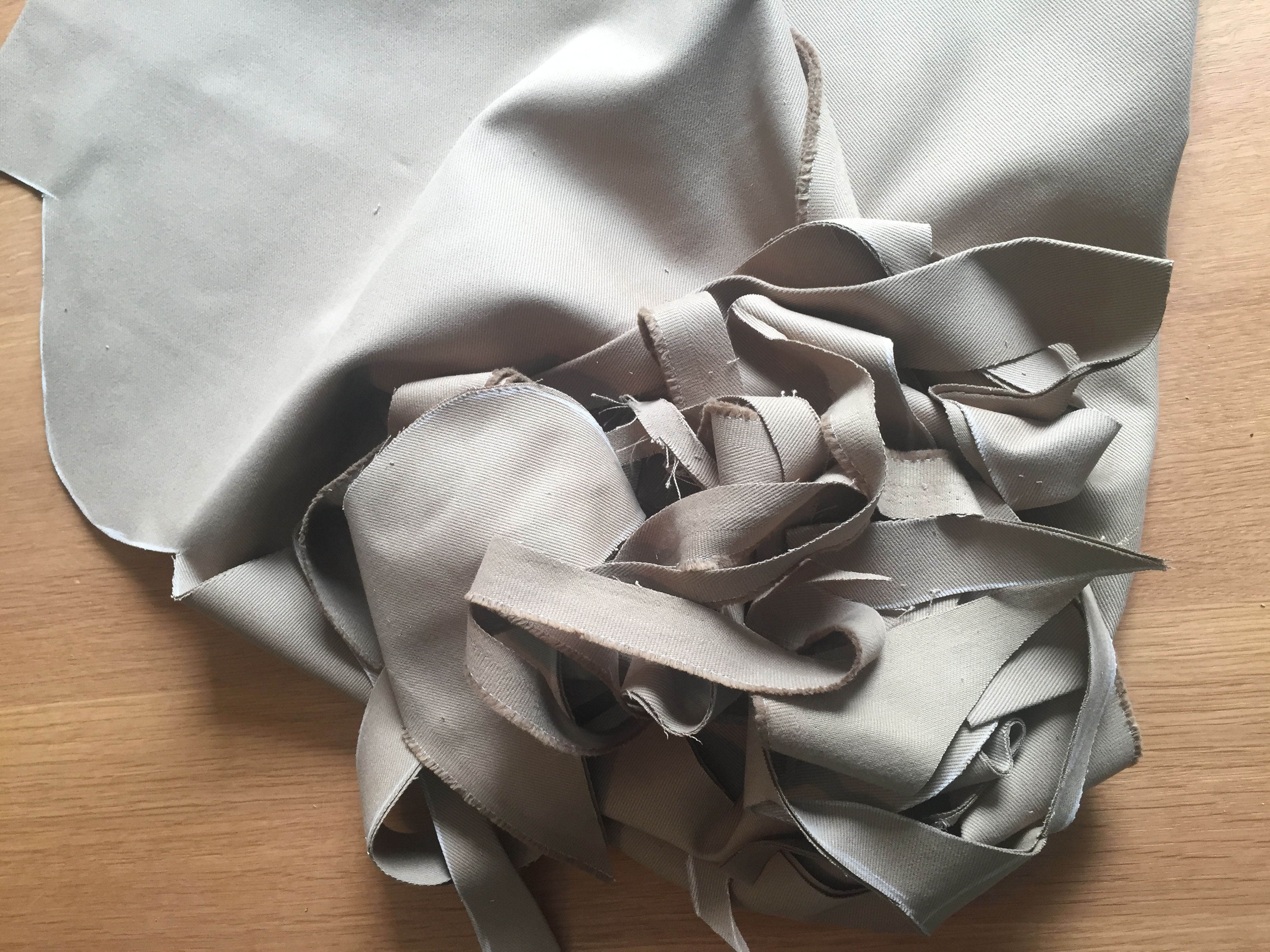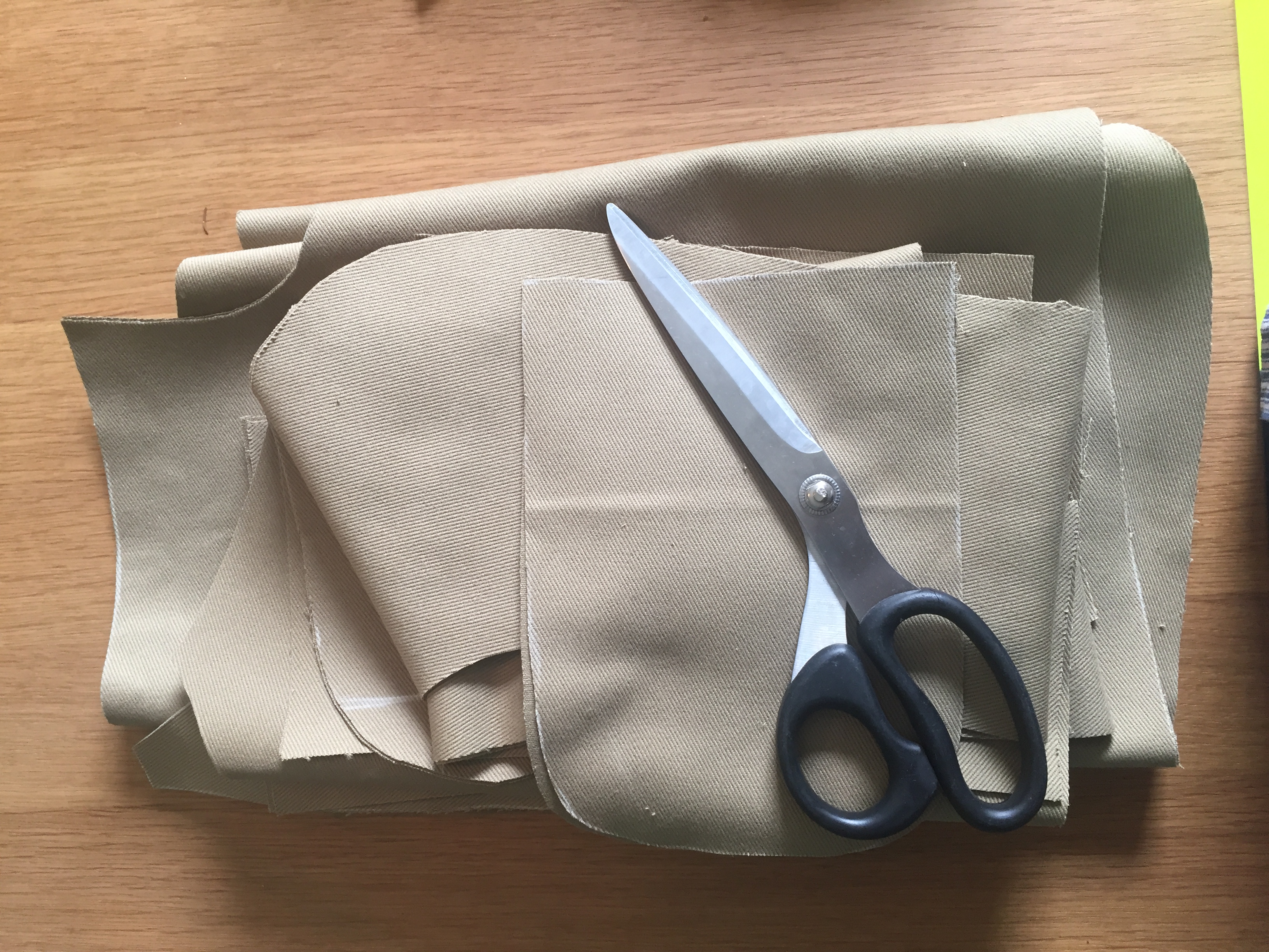 Once you’ve finished cutting all the pieces, you’ll have a pile of the 16 pieces that will become the jacket, and a pile of offcuts that are likely of little use for anything. I needed exactly 4 metres of fabric to make this jacket.