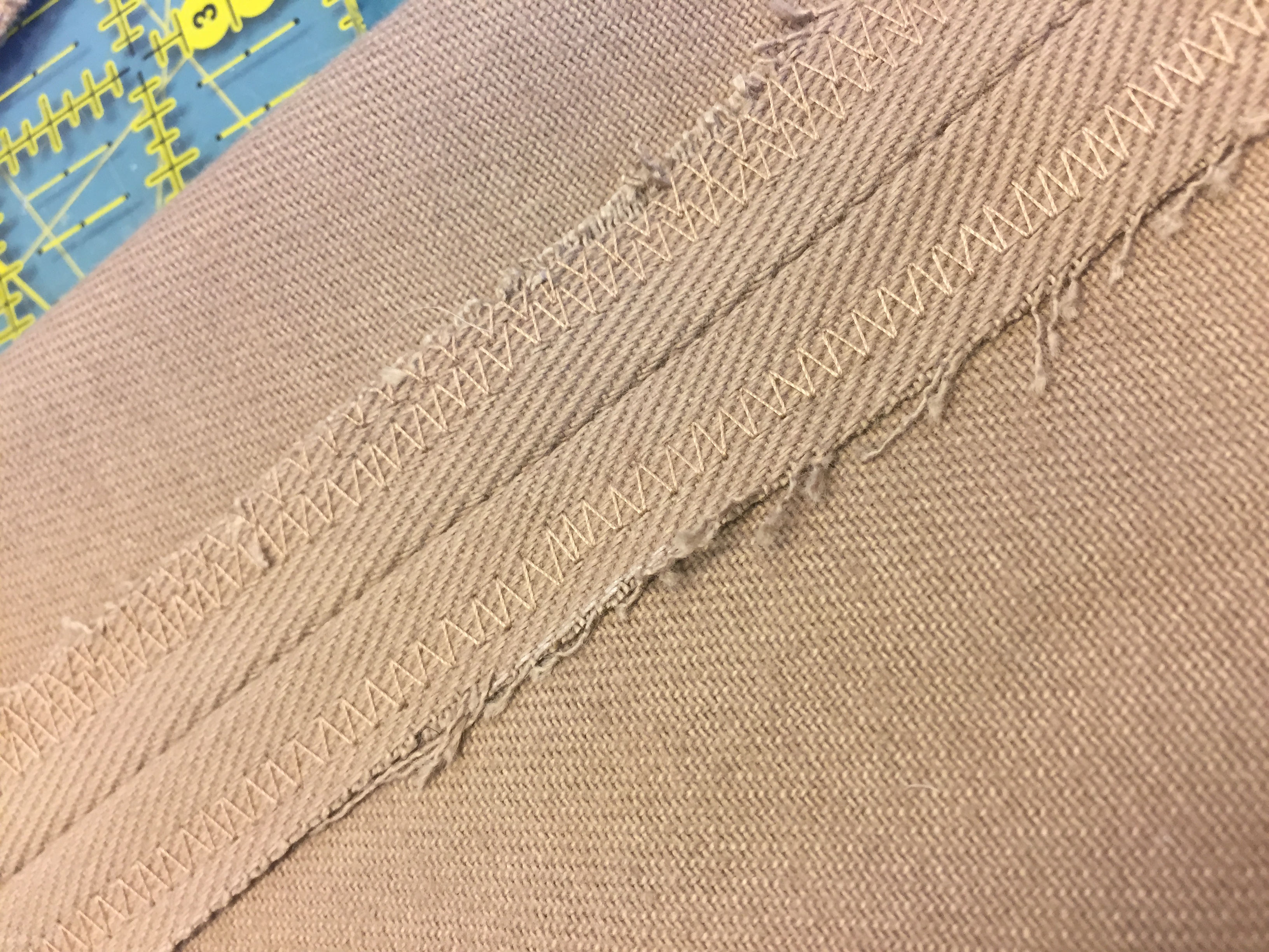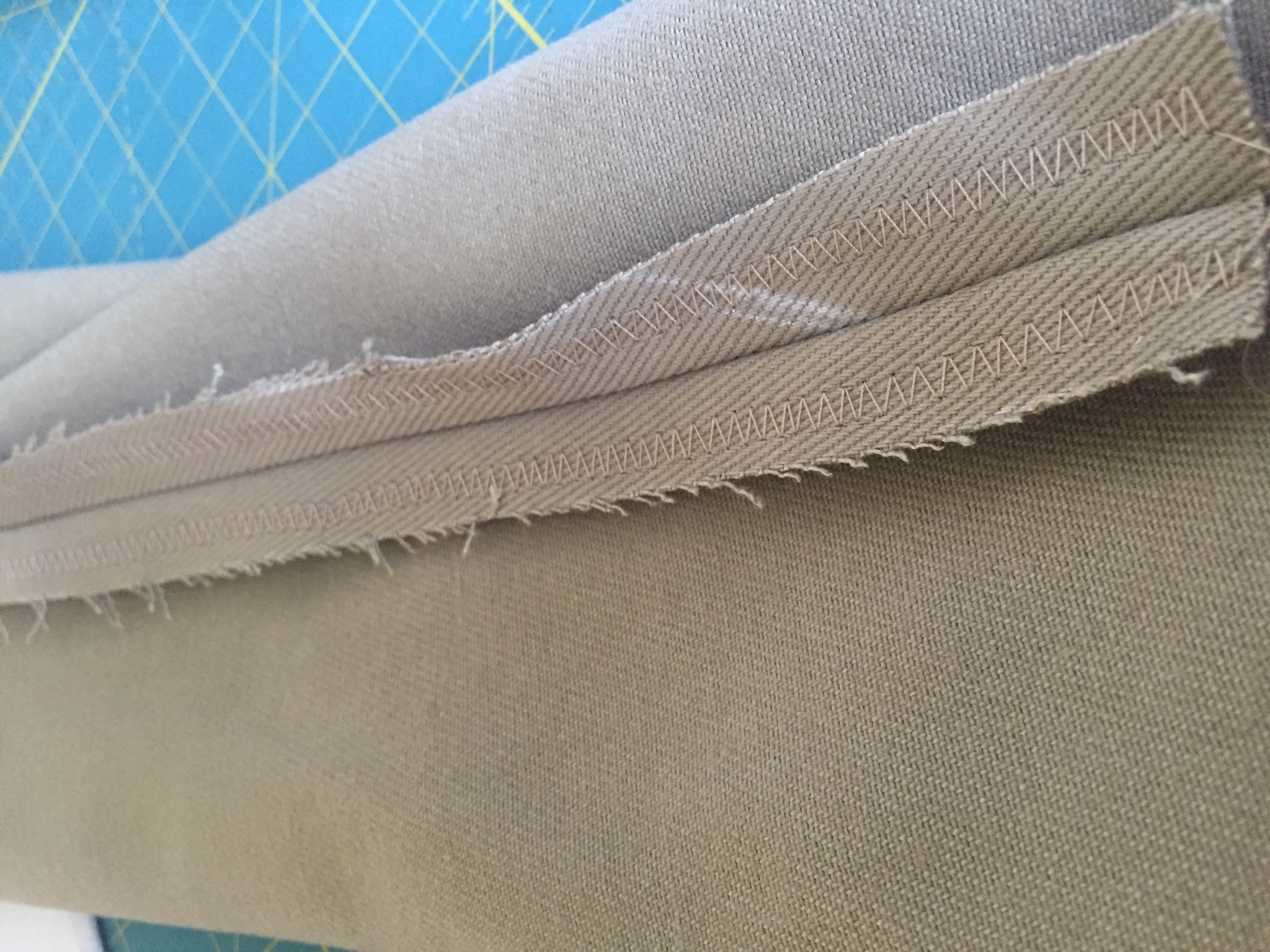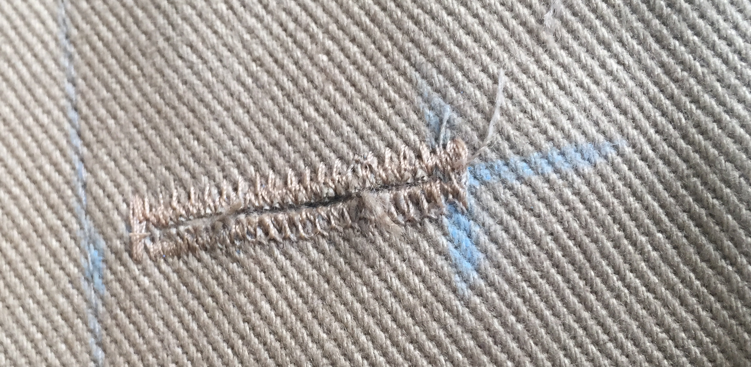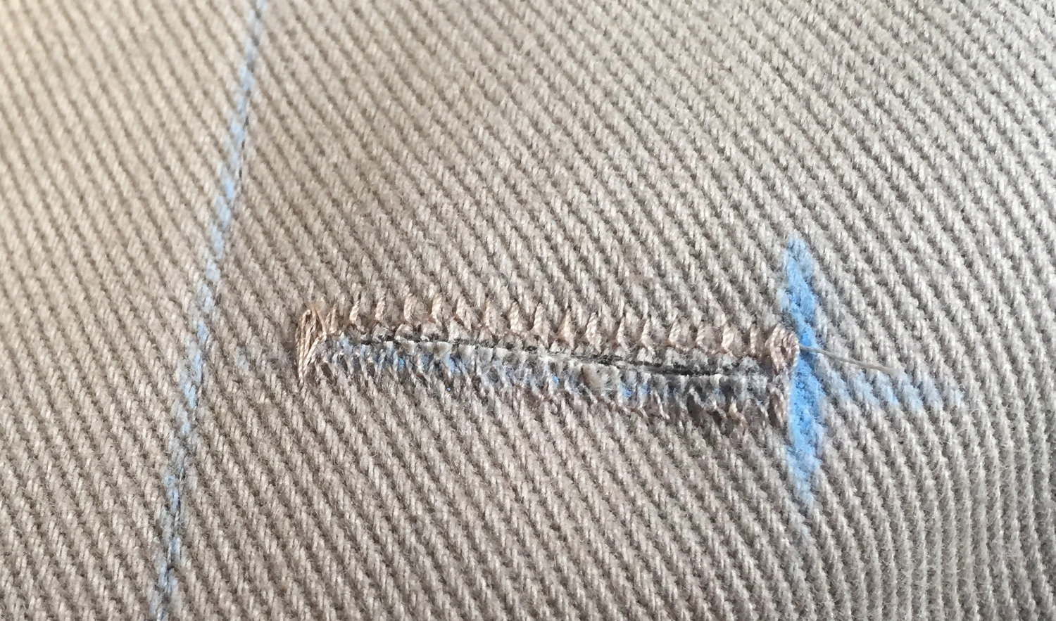 I think every even slightly modern sewing machine, and even an old one from the 50’s with the right attachment, can sew button holes, so I’ll not explain in detail. Do practice though until you can do it with confidence as unpicking moody buttonholes is a sure way of eating up your fabric and it’s a shame to mess up when the end is this close. I received a tip to do an additional run of narrow and tight zigzagging along the edges of the buttonholes, and have tried to do this. The intention is to strengthen the holes and add extra lifespan.